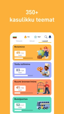 Avasta FunEasyLearniga tohutu keeleressurss, mis kasvab pidevalt koos sinuga. Sinust saab osa enam kui 6000 bulgaaria sõnast, mis on hoolikalt liigitatud 7 taseme ja 200 teema vahel, hõlmates kõiki igapäevaelu aspekte – alates põhinimisõnadest kuni keerukate tegusõnadeni. Lisaks pakub FunEasyLearn üle 5000 sageli kasutatava väljendi, mis on jagatud 10 tasemele ja 120 teemale, tagades, et oled valmis mis tahes vestluseks, olgu see siis reisimiseks või äriajamiseks. Olgu sinu tase algaja, kesktase või edasijõudnu, leiad alati uusi teadmisi, et oma sõnavara ja lauseoskust rikastada.