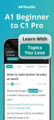 Kas olete valmis avastama prantsuse keele lummavat maailma täiesti uuel ja kaasahaaraval viisil? Readle muudab keeleõppe elavaks, pakkudes teile ainulaadset süvendusmeetodit, mis põhineb reaalsetel uudistel ja lugudel. Unustage igavad õpikud – Readle kohandab igapäevased sündmused ja huvitavad narratiivid teie isiklikule CEFR-i keeleoskustasemele, alates A1-st kuni B2-ni. Piisab vaid viiest minutist päevas, et sukelduda autentse prantsuse keele rütmi, lugedes ja kuulates sisukaid lugusid igal ajal ja igas kohas. See on teedrajav lähenemine, mis aitab teil prantsuse keelt tõeliselt mõista ja rääkida.