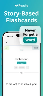 Lisaks pakub Readle intuitiivseid grammatika abivahendeid, mis selgitavad keerulisi reegleid otse loo kontekstis, näidates, kuidas keel reaalselt toimib. Sõnavara kinnistamiseks kasutage meie teaduslikult tõestatud kordustega flashkaarte, mis tagavad, et uued sõnad ja verbid jäävad pikaajaliselt meelde. Iga õppetüki lõpus saate proovile panna oma arusaamise ja grammatikaoskused mõistmistestidega, mis aitavad valmistuda eksamiteks nagu Pipplet, TFI, DELF või DALF. Lai valik teemasid – reisimisest ja kultuurist kuni teaduse ja uudisteni – tagab, et leiate alati midagi huvitavat, millega oma prantsuse keele oskust arendada. Readle ei ole lihtsalt rakendus; see on teie pass prantsuse keele valdamiseks ja enesekindlaks suhtlemiseks.